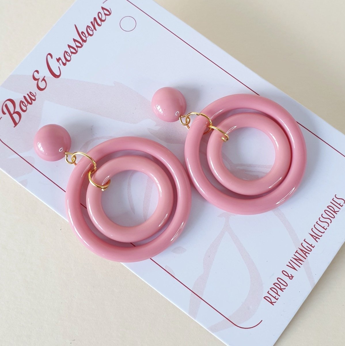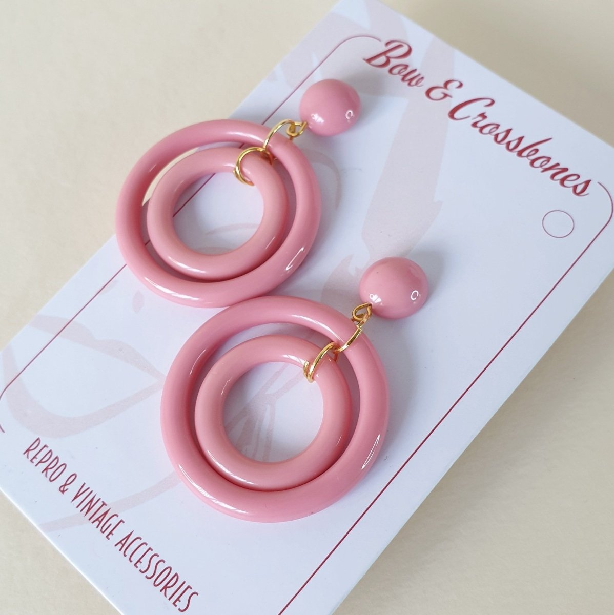 Jewellery trends come and go but fakelite is a modern classic! Our DOT Double Hoop Earrings feature two free dangling hoop charms in Baby Pink.